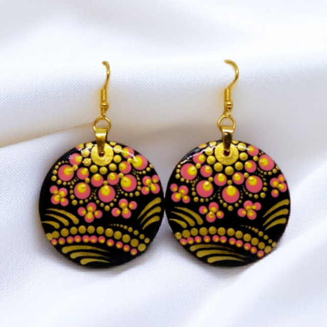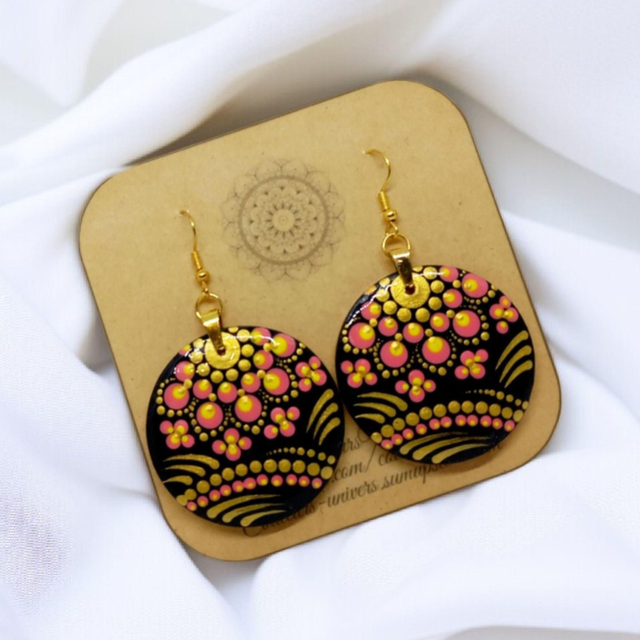 Mettez de la couleur dans votre vie avec ces sublimes boucles d'oreilles roses en bois et acier inoxydable, peintes à la main des deux côtés pour un look unique!