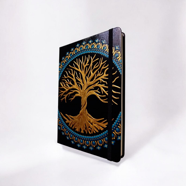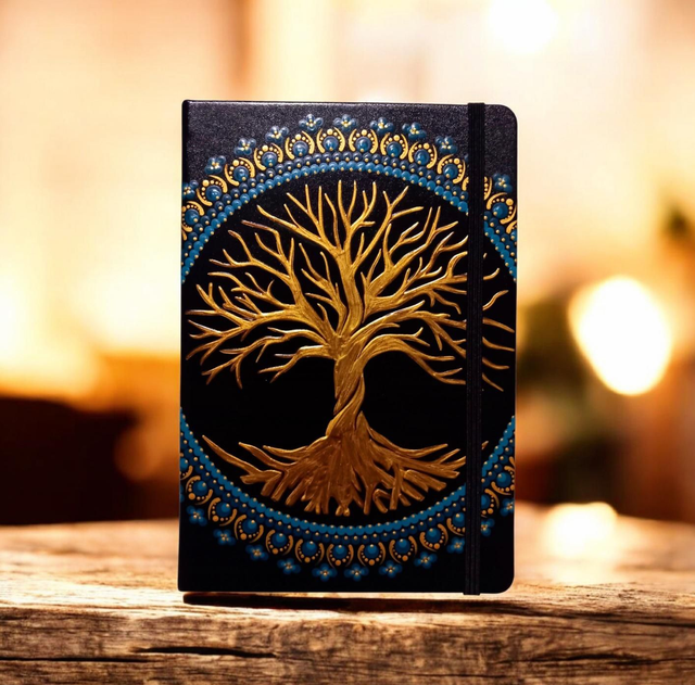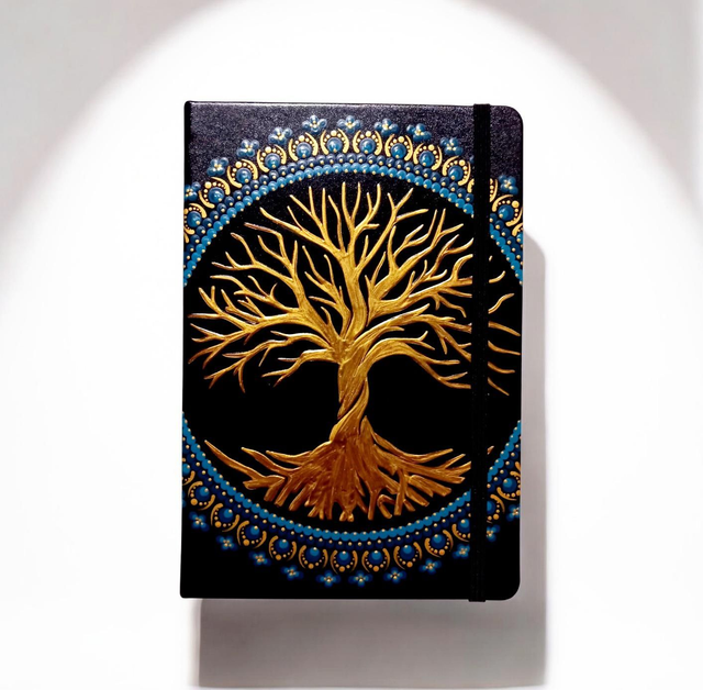 Ornée d'un magnifique mandala bleu peint à la main, la couverture apporte une touche d'élégance et de délicatesse à ce précieux carnet.