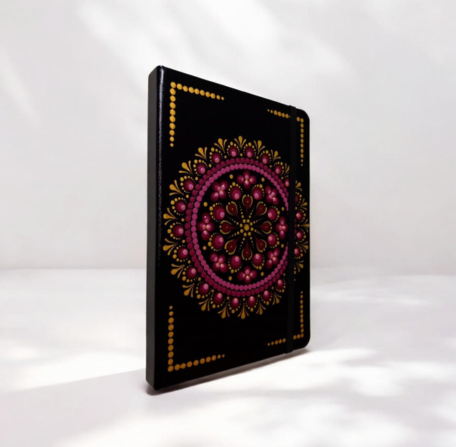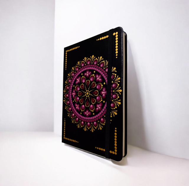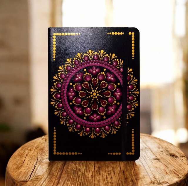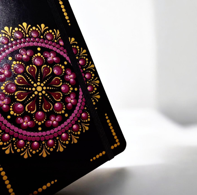 Ornée d'un magnifique mandala violet peint à la main, la couverture apporte une touche d'élégance et de délicatesse à ce précieux carnet.