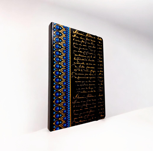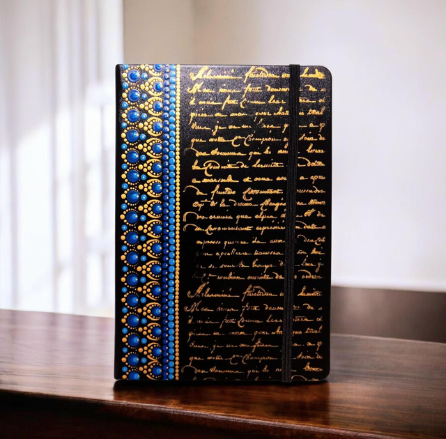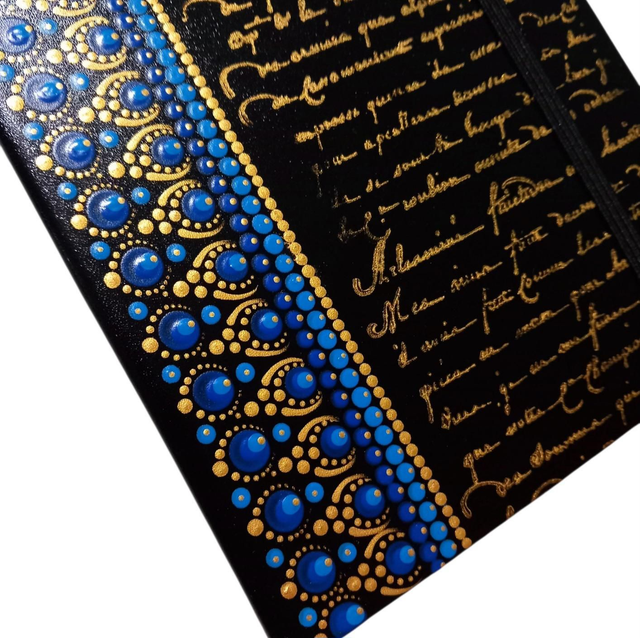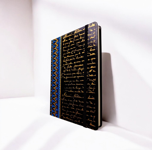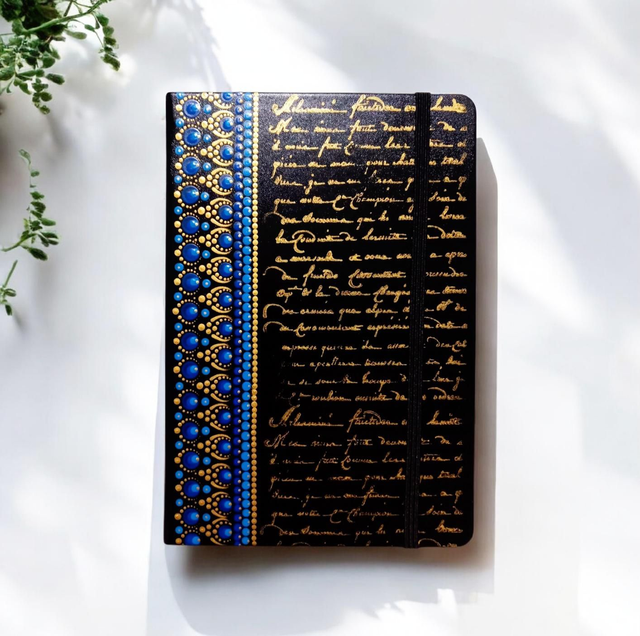 De coloris bleu et or, la couverture apporte une touche d'élégance et de délicatesse à ce précieux carnet.