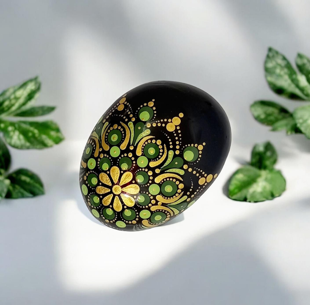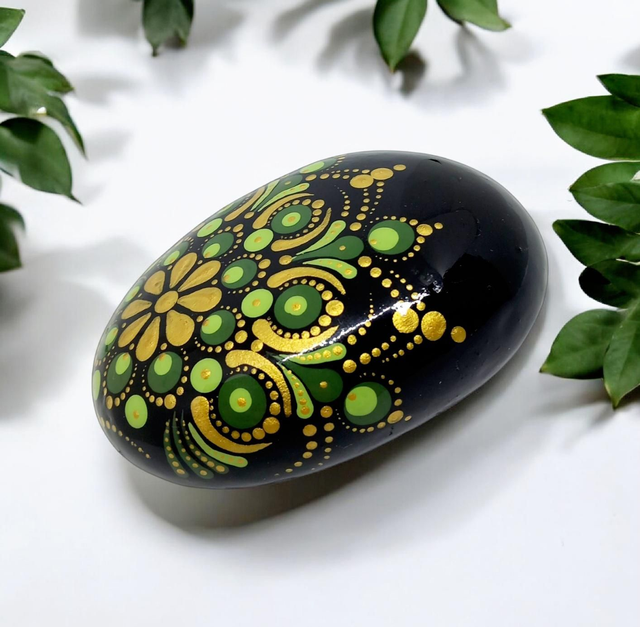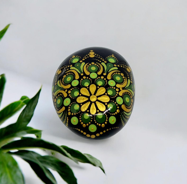Trouvez l'apaisement et la sérénité dans votre quotidien, en intégrant ce superbe galet naturel, dans les tons vert kaki et or.