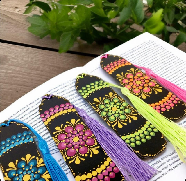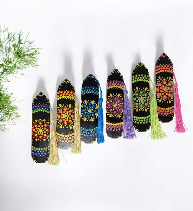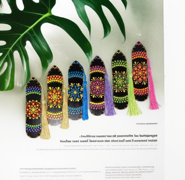 Plongez dans vos livres avec style grâce à ces magnifiques marque-pages colorés en bois, ornés d'un charmant pompon et peints à la main.